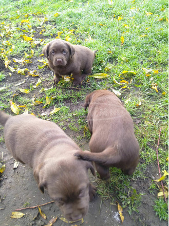 Hat hetes csokibarna Labrador kiskutyák költöznének,